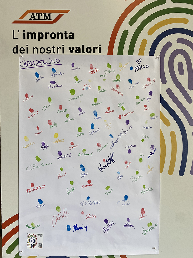 Tra settembre e novembre 2024, i nostri valori sono stati presentati in 23 sedi aziendali. Attraverso varie attività e un quiz, abbiamo conosciuto meglio l'impronta dei valori e coinvolto le persone di ATM presenti nelle varie sedi.